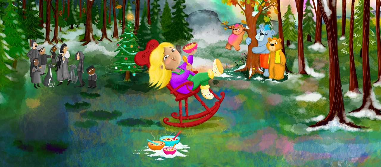 Bob blwyddyn rydym yn perfformio ein sioe Nadolig yn y Stiwdio yn Gymraeg a Saesneg. Mae Elen Benfelen wedi’i chyfieithu i’r Saesneg fel Goldilocks. Bydd y sioe iaith Saesneg yn cael ei pherfformio mewn perfformiadau ar wahân.